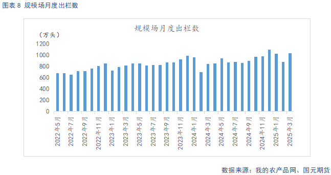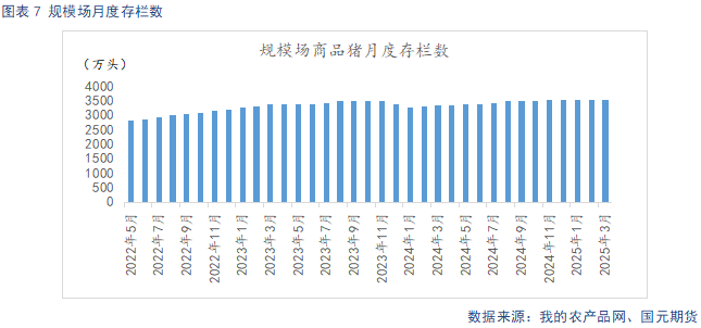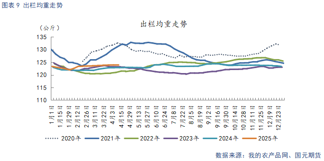 2.2 量重双高 供给有进一步开释压力 把柄农业农村部数据骄傲,2025年2月末寰球能繁母猪存栏量4066万头,同比上升0.6%,环比上升0.01%,在24年12月至25年1月,能繁母猪存栏一会儿下调后,再度回升,供给增量步地延续。把柄农业农村部新修正的《生猪产能调控实践决策》,刻下能繁存栏非常于闲居保有量的104.6%,处于绿色偏高区域。 据Mysteel统计,截止2025年3月底,领域场能繁母猪存栏量为504.84万头,环比上调0.08%,同比增长4.83%。3月多空僵执下,猪价窄幅波动,生息端仍有一定盈利空间,主动去产能意愿不彊,能繁母猪存栏小幅上调。自24年3月起,生息利润回暖撑执下,领域场产能渐渐回升,从坐褥周期推算,2025年领域场表面产能呈现环比上升态势。领域场3月商品猪存栏数为3544.57万头,环比加多0.27%,同比加多6.32%。领域场2月商品猪出栏量为1039.28万头,环比加多17.43%,同比加多22.65%。3月出栏天数大于2月,领域场出栏加快,月度打算完成度较好,3月出栏量环比大增。4月天气转暖,领域场出栏打算增量,重叠标肥价差收窄,前期压栏、二育猪源将渐渐开释,出栏量有望延续增长。 截止4月11日,生猪出栏均重123.98公斤,较上周环比加多0.07公斤。刻下出栏均重处于近四年高位,单头生猪提供的肉量加多,供给端靠近量重双高的所在。